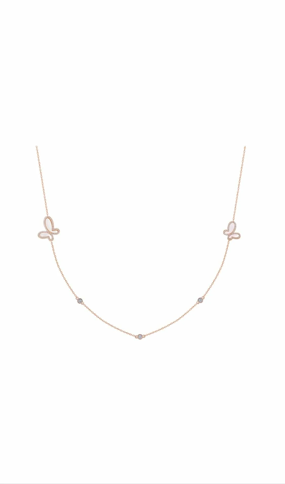 -18 karat rose gold plated silver with mother of pearl butterflies