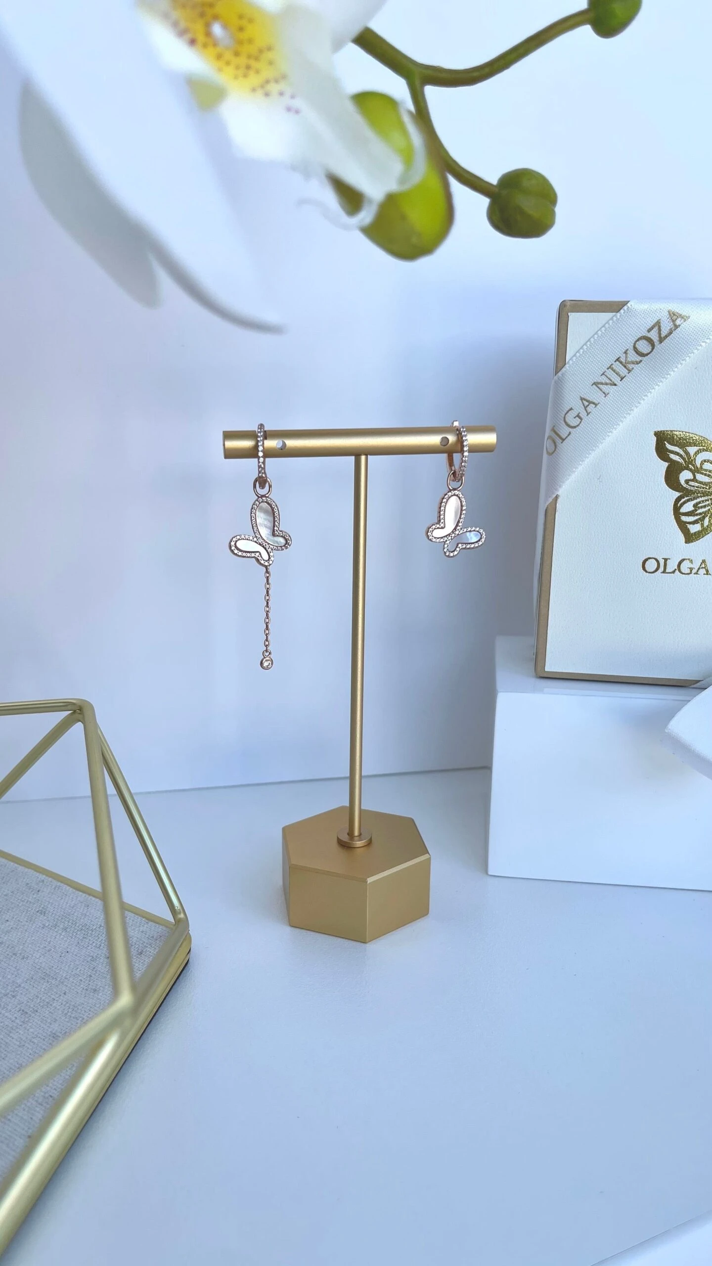 Gorgers Rose Gold mother of pearl earrings. Could be worn two ways with or without butterflies.